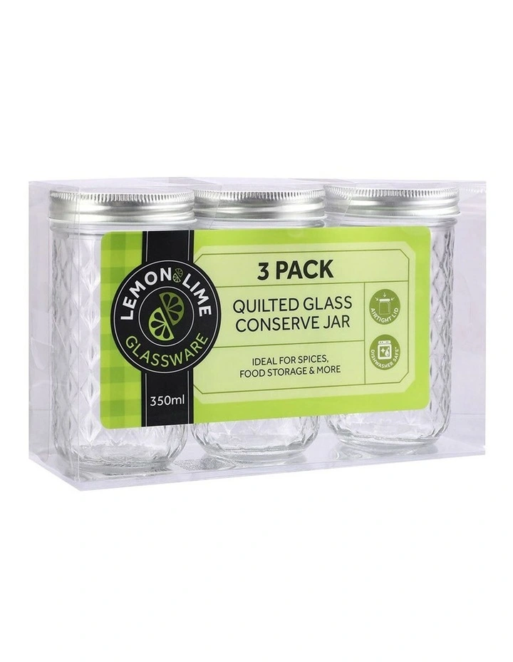 3PK Lemon & Lime 350ml Quilted Glass Conserve Jar is ideal for spices, food storage and more.
