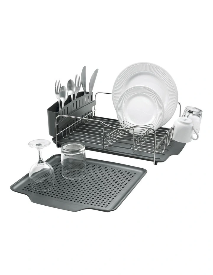 The 4-Piece Advantage Dish Rack System from Polder combines a versatile high quality drying system with elegant design. Fitted with a removable slide-out tray capable of providing almost double the draining space, this 4-piece system made from rust-resistant, brushed stainless steel, takes up minimal countertop space and is perfect for one person or a family of four.