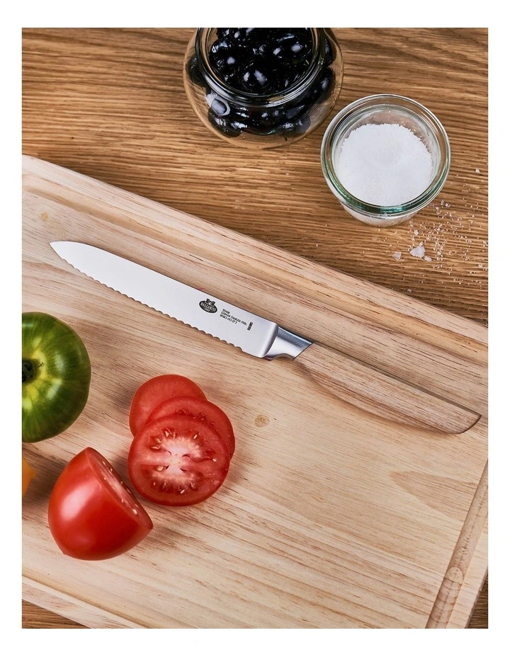 A multi-purpose knife ideal for many prep tasks in the kitchen. The serrated edge works well on soft fruit and vegetables such as tomatoes and eggplant