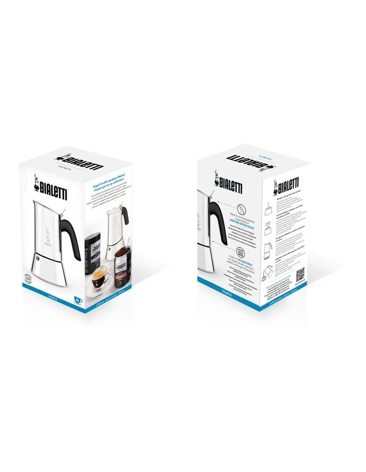 Venus is the stainless steel coffee maker whose practicality, pleasure shape and essential and functional style protray all Bialetti’s experience, passion and enthusiasm coffee.