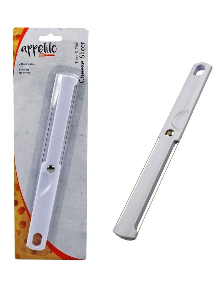 The Appetito Thick & Thin Cheese Slicer is great for slicing all types of hard cheeses, providing the perfect slice every time.