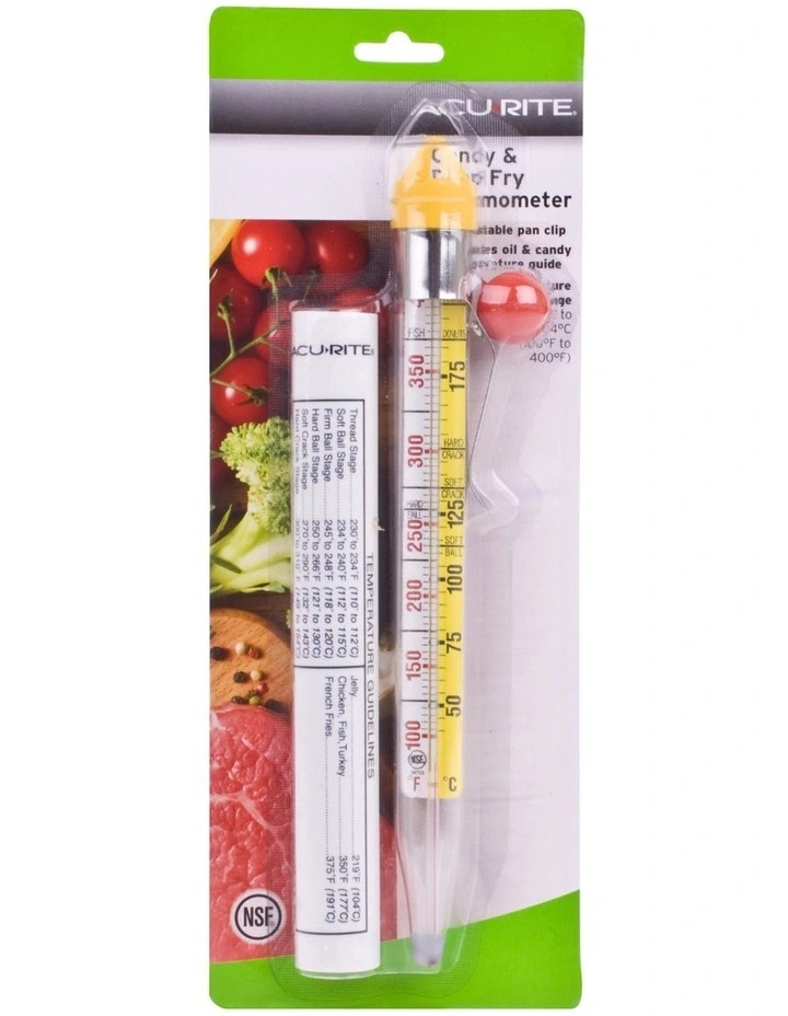 The Professional Candy/Deep Fry Thermometer W/Sheath from AcuRite becomes your cooking companion, able to test the temperature of candy or oil up to 204 degrees Celsius.