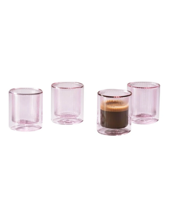 The Cooks Collective Double Wall Ribbed Glasses Set of 4 80ml – Pink