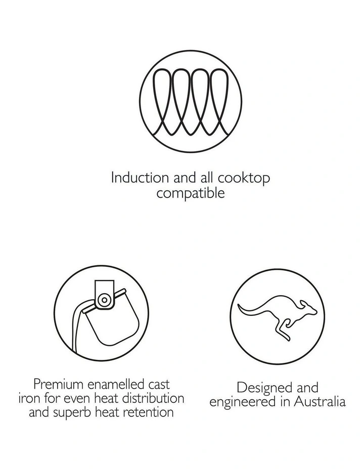 - Premium enamelled cast iron for even heat distribution and superb heat retention