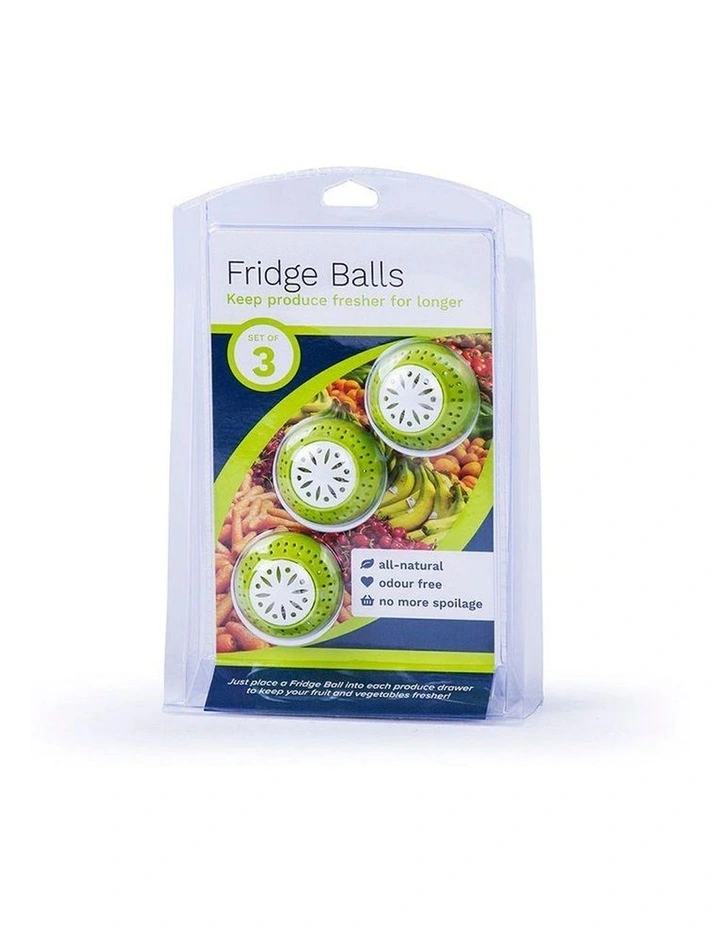 Fridge Balls keep your fruits and vegetables fresh longer. The fresh packs absorb the ethylene gas and keeps fruit and vegetables crisp. Fridge balls use all natural minerals, no more waste and spoilage. Just place the refrigerator balls into each product drawer to keep your produce fresher, longer. Extend the life of fruits and vegetables by up to 3 weeks longer!