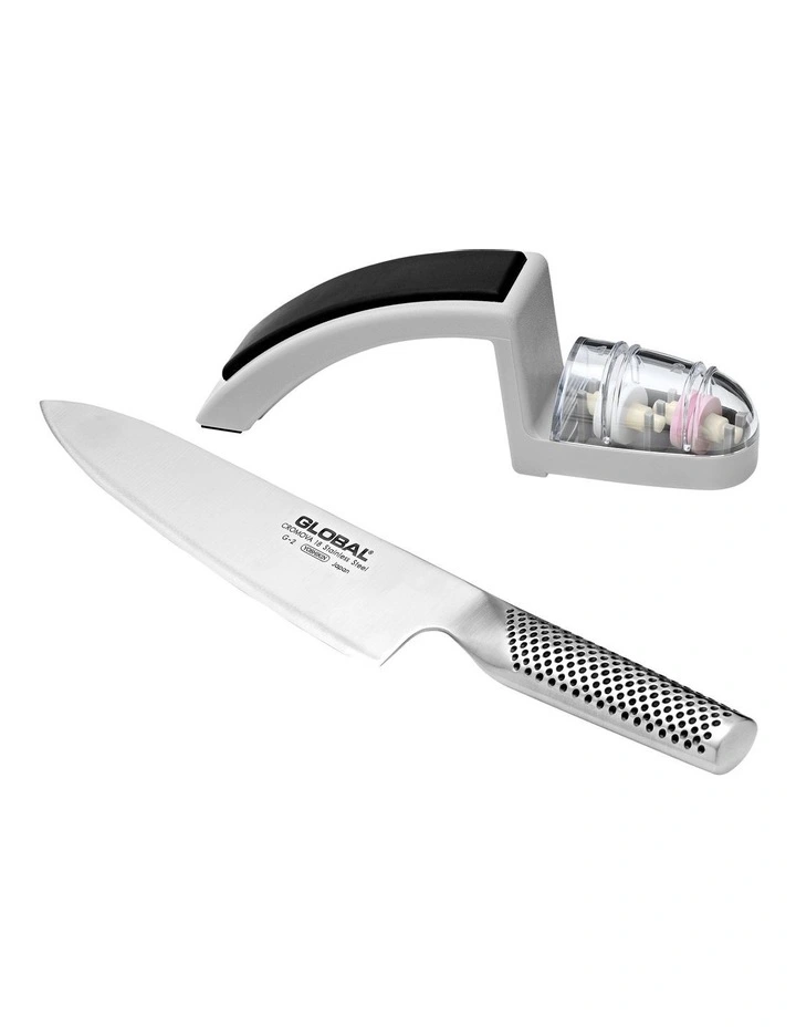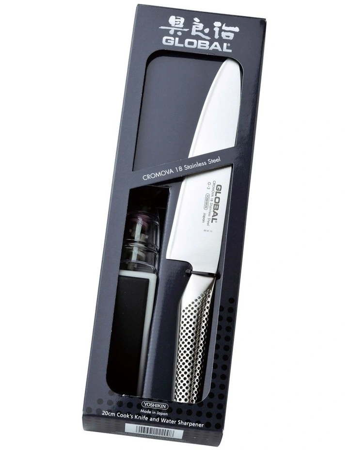 This 2 piece set combines GLOBAL knives best-selling G-2 20cm Cook’s knife, and two stage MinoSharp sharpener, ensuring your knife always remains razor sharp. This is a set for those wanting to start their own GLOBAL collection.