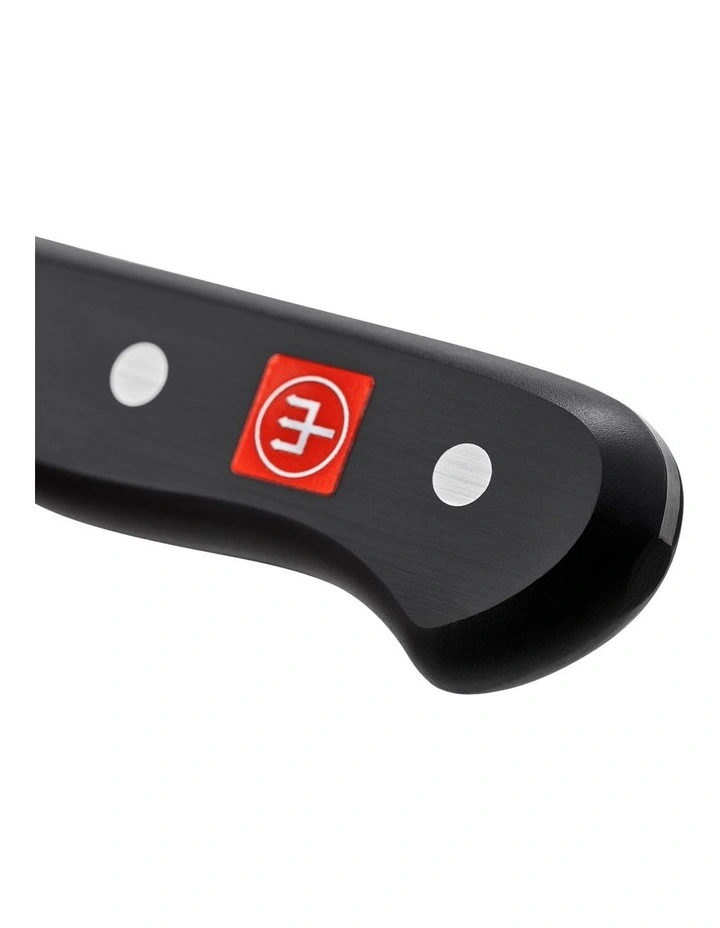 | Light. Sharp. Versatile. The GOURMET series is an agile all-rounder in the kitchen making them comfortable to hold and well-balanced to facilitate cutting that is easy on the hands and wrists. With handles made from special synthetic material making it hygenic for use in the kitchen. Globally recognised as number one for kitchen knives, WSTHOF stamped knives are laser cut from stainless steel plates and offer an extremely high degree of hardness comparable with the quality and sharpness of forged knives. Exceptionally robust, with long-lasting superior sharpness from their laser certified Precision Edge Technology (PEtec). – Ideal for slicing larger cuts of meat, fruit and vegetables. |