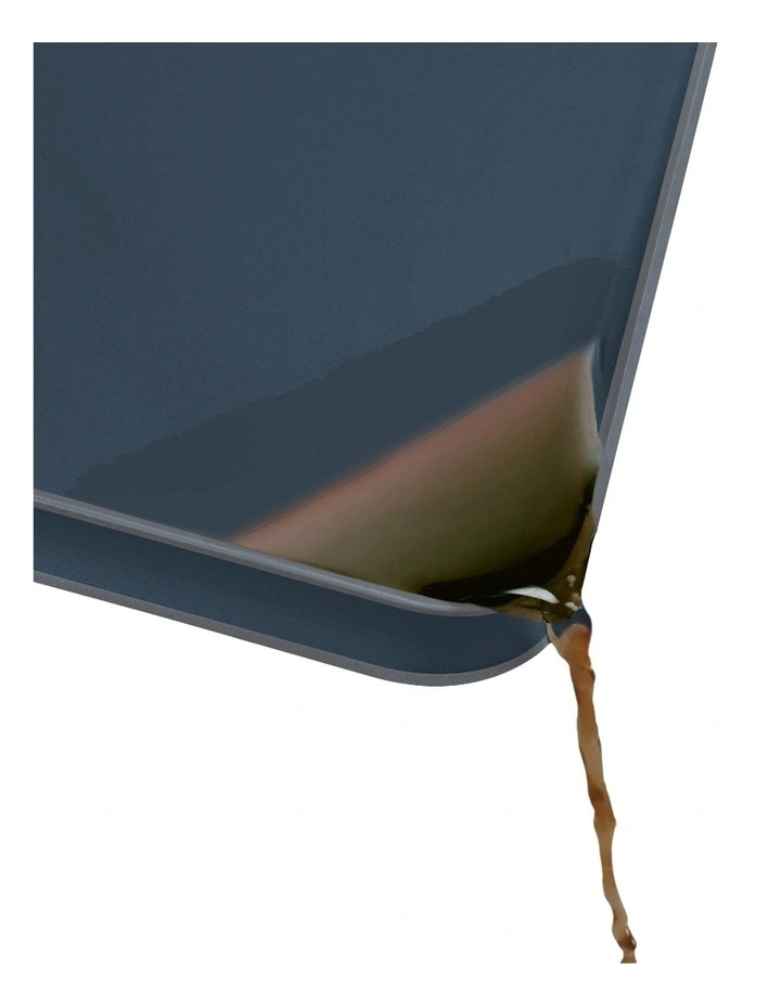 Cut&Carve Plus is the double-sided, multi-function chopping board. It has an integrated meat grip on one side of the board and angled cutting surfaces and easy-pour corners, which help in the collection and disposal of liquids or food when cutting or carving. The opposite side of the board provides a smooth cutting surface, for general food preparation. It also has non-slip feet and soft-grip sides.