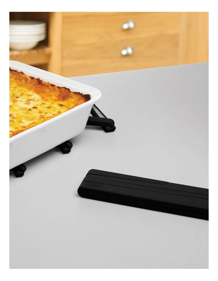Most pot stands, or trivets, only provide enough space for standing a single hot pan or dish on, meaning additional stands are required if serving food from a variety of hot containers. The unique design of Stretch helps eliminate this, as its size can be easily adjusted to provide space for more than one pan, or even a single large casserole dish. After use, it folds neatly away for convenient storage. Made from a high-quality silicone-nylon composite, it is heat resistant up to 340C/640F. Dishwasher safe.