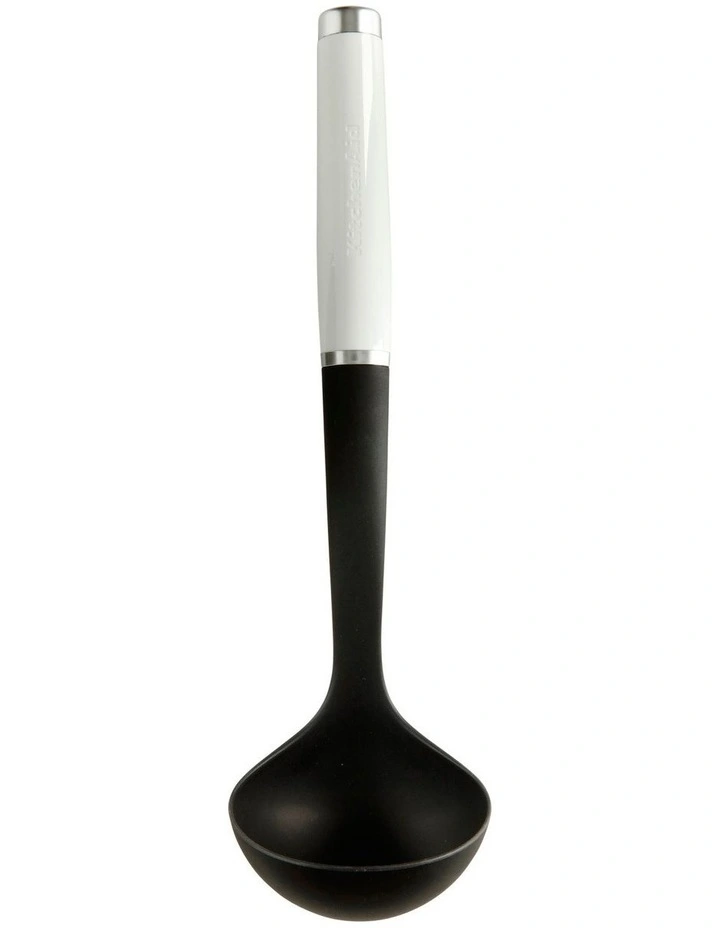 The KitchenAid Classic Ladle features a deep bowl for pouring your soups and sauces. The ladle is made from heat-resistant, durable nylon, reinforced to last. While the handle is beautifully finished in gloss white with satin chrome accents.