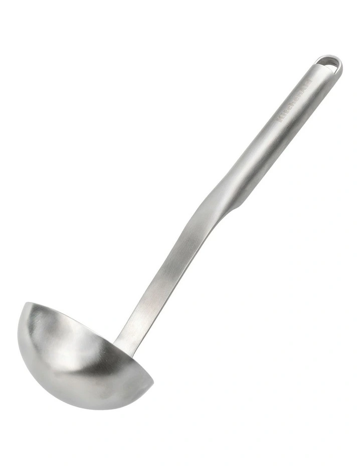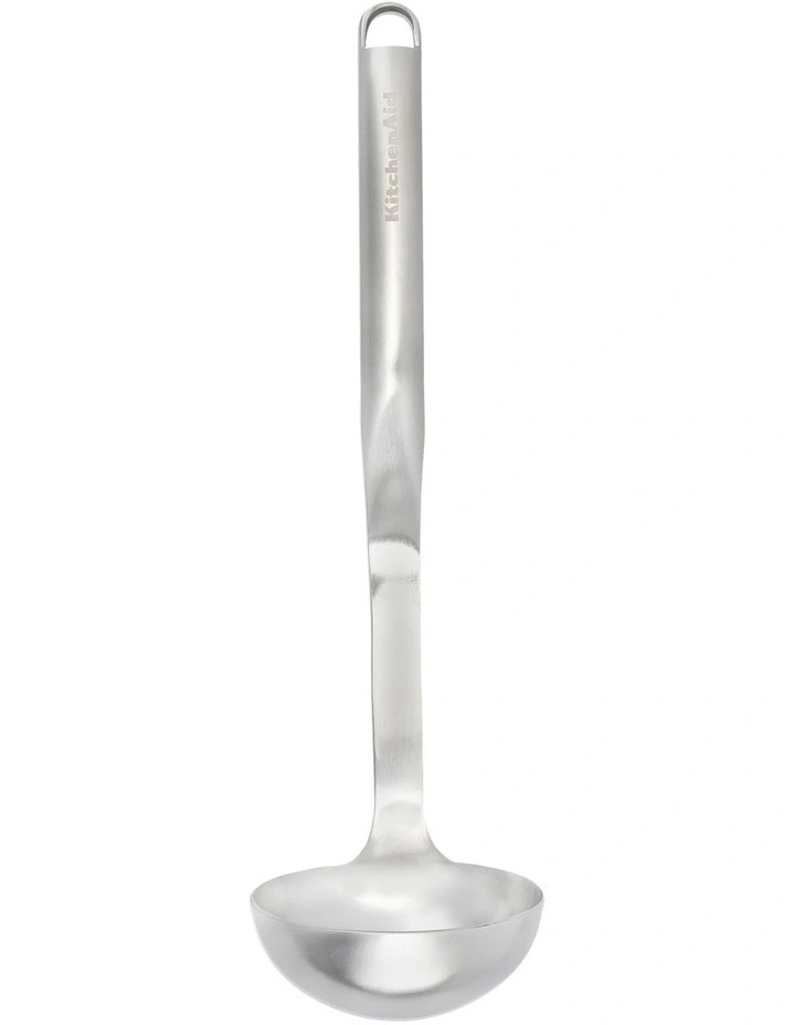 This KitchenAid Premium Ladle is perfect for dishing out gravies, soups, sauces and everything in between. The spoon is constructed completely from stainless steel to efficiently take you through your daily tasks with comfort and style. While the handle is beautifully finished with the iconic KitchenAid logo. This tool is not only highly functional and easy to use but also easy to clean, and it is dishwasher safe.