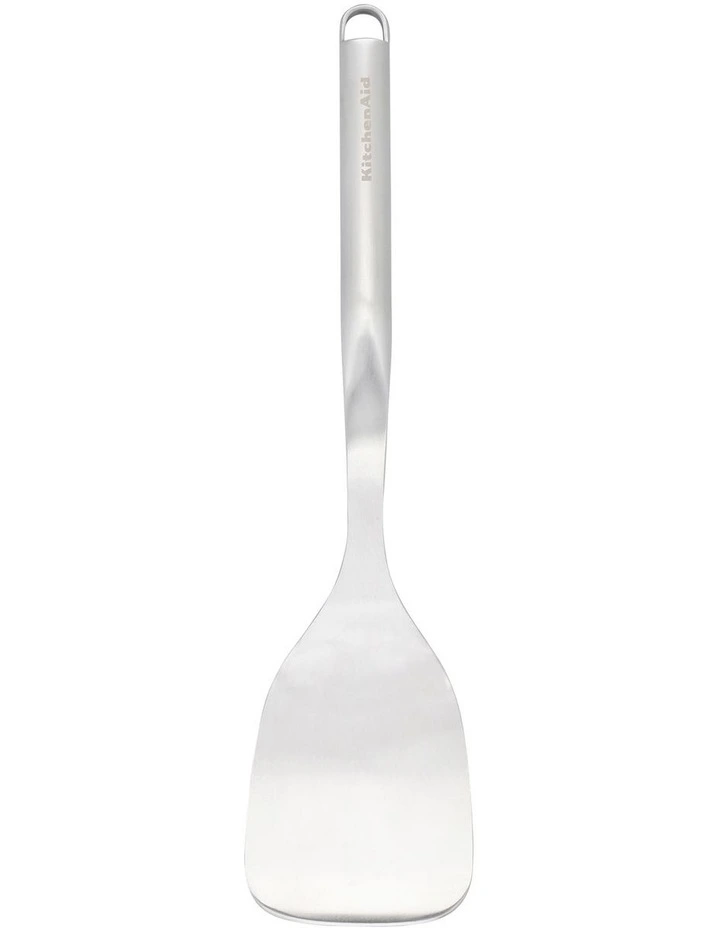 The KitchenAid Premium Solid Turner is perfect for flipping anything from eggs to biscuits to pancakes. Featuring a solid paddle with tapered edges, the sleek design is constructed completely from stainless steel to efficiently take you through your daily tasks with comfort and style. This tool is not only highly functional and easy to use but also easy to clean, and it is dishwasher safe.