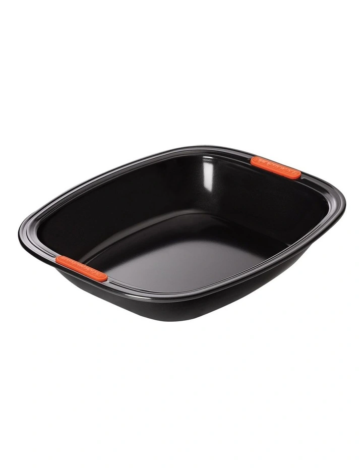 The perfect shape for oven-roasting of meat, poultry and vegetables. The easy-release non-stick coating is so easy to clean, both inside and outside the tin, even caramelised meat juices come away with ease. The deep side walls minimize splashes and the wide rim, featuring silicone inserts for added grip when taking to and from a hot oven. Developed to resist sticking from higher sugar content baking, the non-stick coating is silicone based, multi-layer and manufactured free of PFOA.