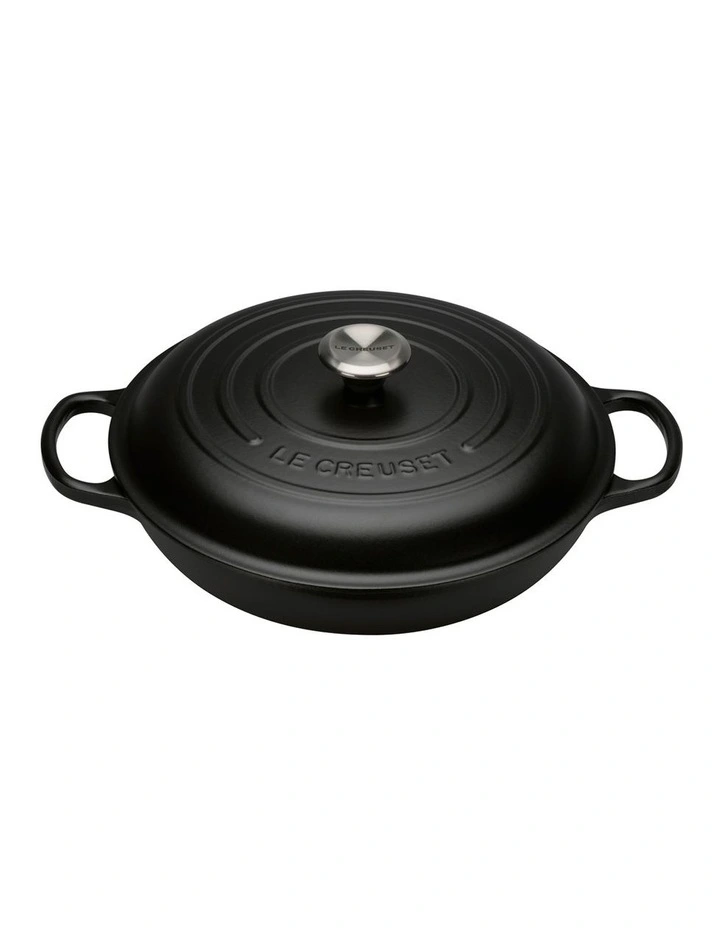 This casserole dish is designed to enhance slow-cooking by heating evenly and sealing in moisture. Wide cooking surface provides ample room for browning foods on the stovetop before slow simmering or braising.