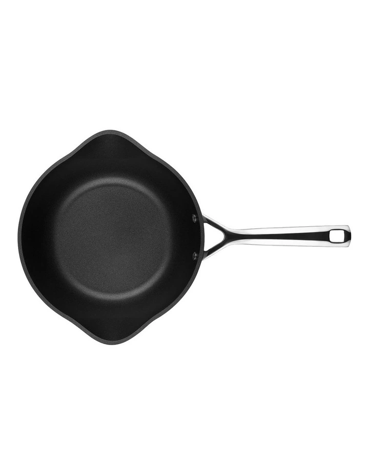- Hard anodized aluminium body is light in weight and will heat evenly across the base and sides