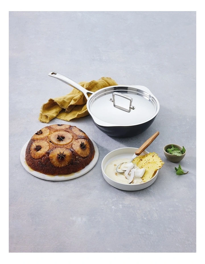 The Chef’s Pan is highly versatile for a number of recipes and a brunch-to-dinner solution. Two convenient pouring spouts on the side of the pan allow for the easy removal of liquids to achieve crisp results. If used without the lid, liquids can be quickly reduced into a delicious sauce thanks to the wide, flat base of the pan. The high sides prevent splattering or spilling and allow for easy stirring.