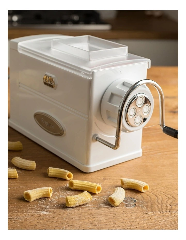 The Atlas Regina Pasta & Macaroni Pasta Machine by Marcato is the ultimate compact manual pasta making machine, making five different types of pasta in the comfort of your home kitchen
