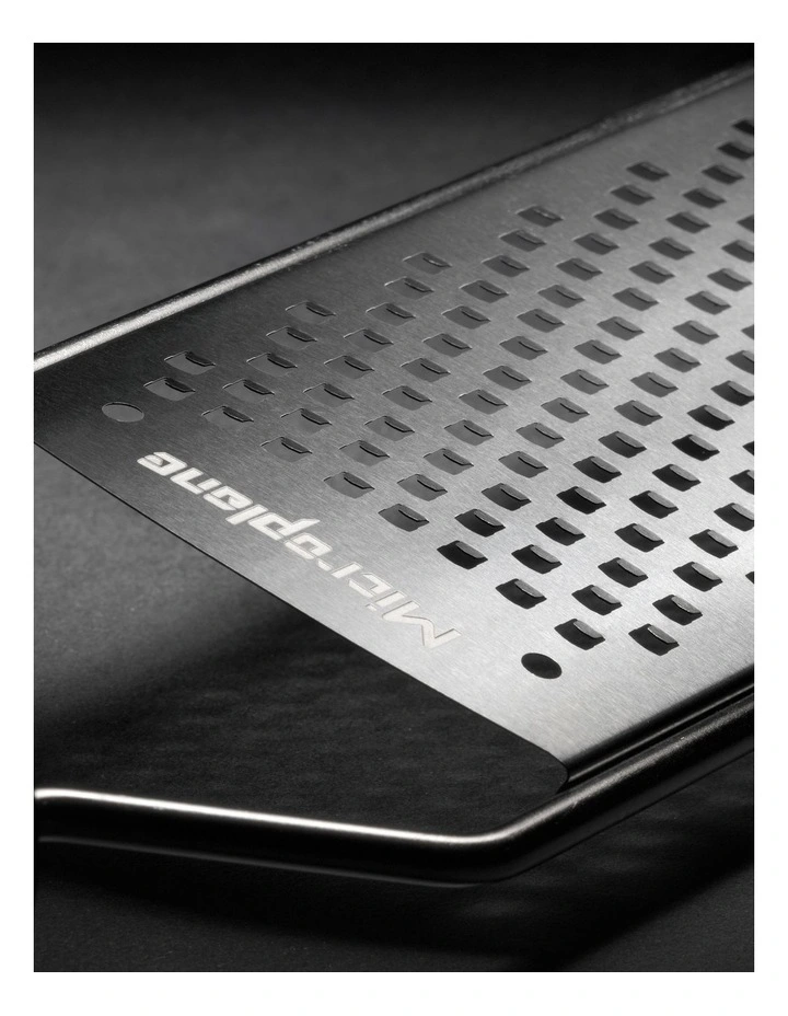 The Microplane Gourmet Series retain the clog-resistant stainless steel blade of Microplane graters, but with the addition of an angled, non-slip bar at the ‘table end’, improving leverage when grating