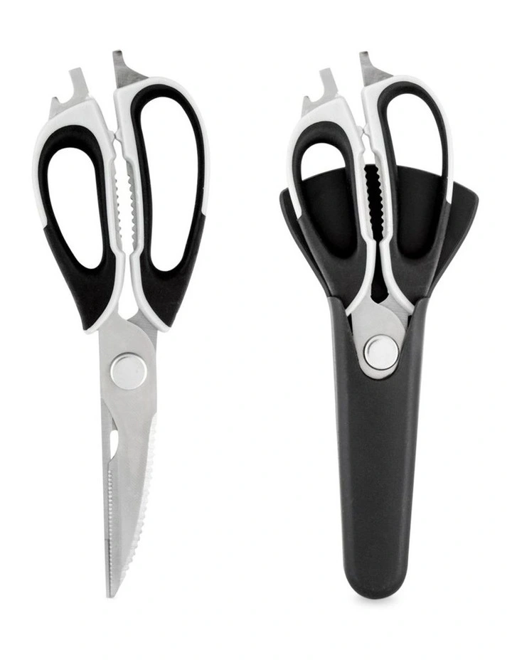 Made with super strong, super sharp stainless steel blades, the thick, premium blades are so sharp they can glide through just about anything. Every cut is made with precision thanks to the extremely comfortable non-slip handle. Truly multipurpose – household scissors, meat and bone scissors, vegetable scissors, scale scraper, nutcracker, peeler, and bottle opener. When you’re done using your Super Scissors, separate the blades and pop them in the dishwasher for a fast clean. Then slip them into their convenient magnetic storage case so they’re organized and ready to use next time.