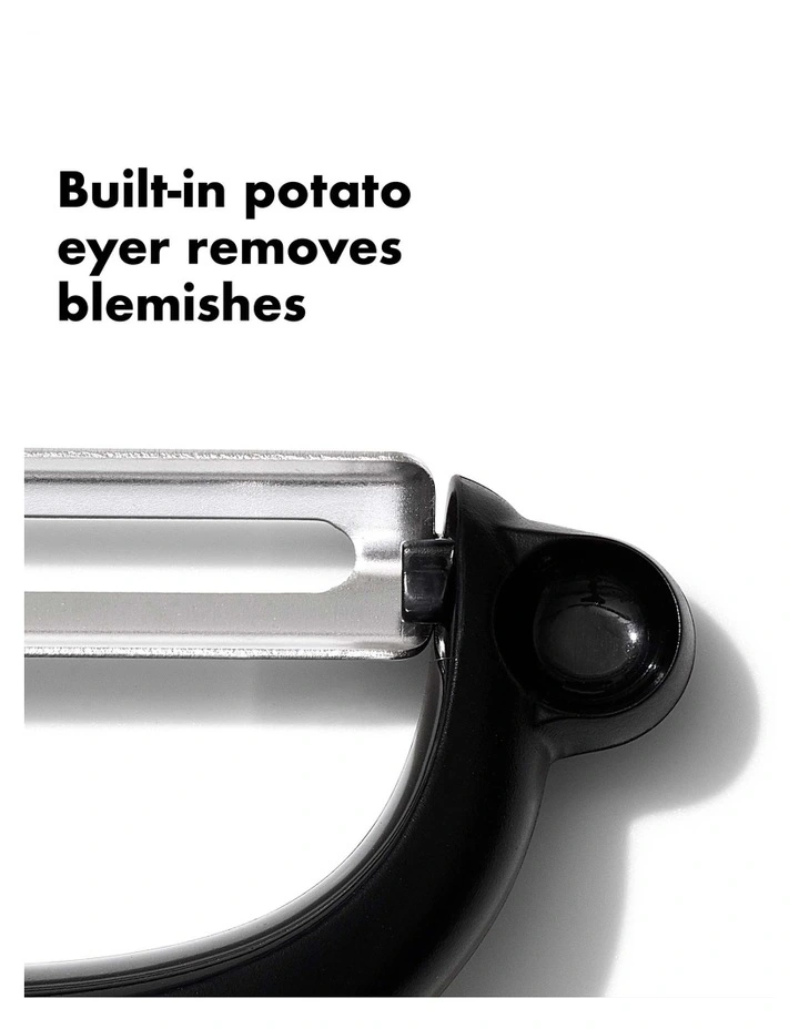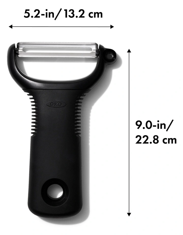 Named for its shape, the Y Peeler features a sharp, stainless steel blade that glides through even the toughest fruit and vegetable skins with ease. The soft, comfortable handle cushions your hand as you peel, and is non-slip, even when your hands are wet.