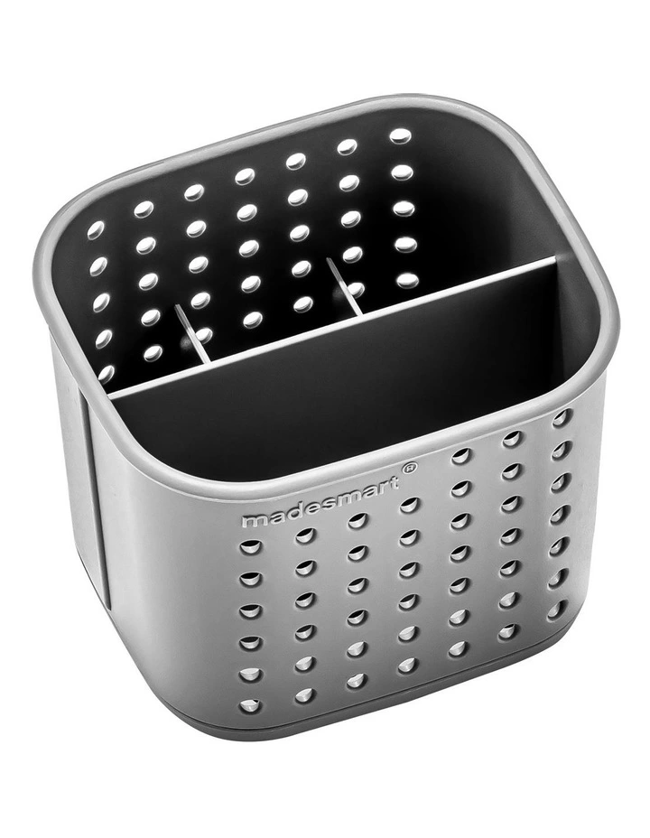 The Madesmart Pocket Sink Station keeps dish washing tools tidy and contained. Divided interior compartments provide a space for sponges, scrubbers, and dish wands, while ventilation holes promote faster drying for improved sanitation. The detachable drainage base allows for easy cleaning, and soft-grip material protects countertops while keeping the station in place.