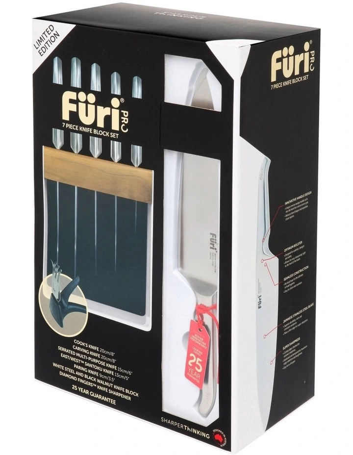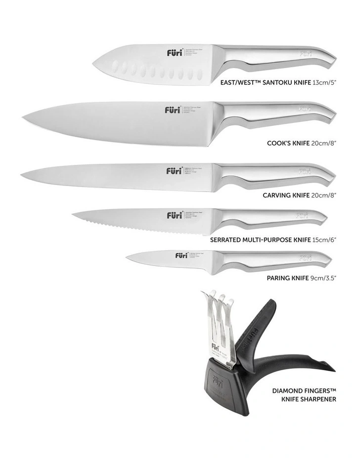 To maintain optimal sharpness the patented Furi Diamond Fingers Knife Sharpener is also included.