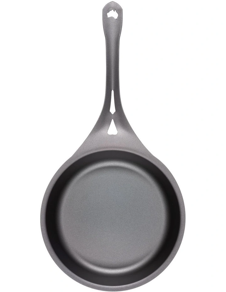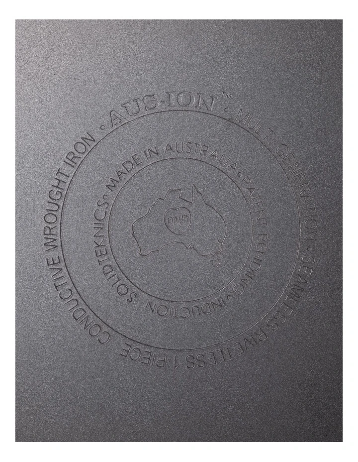 100% made in Australia. Wrought from a solid sheet of 2.5mm thick Australian iron, there are no joins, screws or rivets. Superior conductivity, even heating and easy to clean. Suitable for all heat sources, from induction stovetop, to oven, to campfire and woodfired pizza ovens.