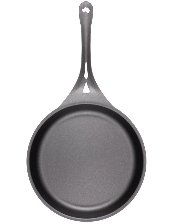 100% made in Australia. Wrought from a solid sheet of 2.5mm thick Australian iron, there are no joins, screws or rivets. Superior conductivity, even heating and easy to clean. Suitable for all heat sources, from induction stovetop, to oven, to campfire and woodfired pizza ovens.