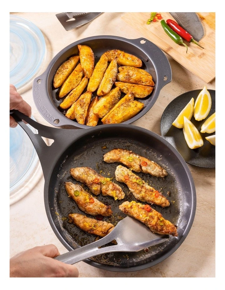 The AUS-ION 28cm Frypan is an excellent everyday workhorse for a variety of cooking styles and meals. This pan has your frying, baking and grilling needs covered. Eggs every way, meat, fish, vegetables, deep-frying and one-pan meals. Achieve the perfect sear on a steak!