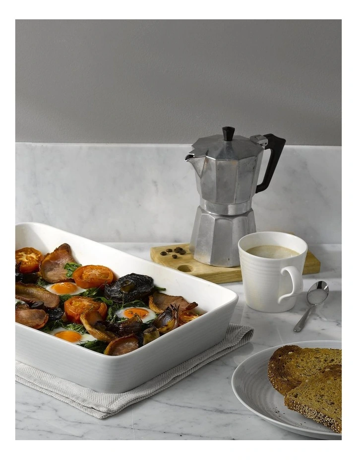 Irresistible, all-in-one dishes are some of Gordon Ramsays signature recipes and with the latest additions to the Maze range including this Roaster Rectangular Dish, the aim is to bring some chef-inspired style to your home entertaining. Crafted from Royal Doultons durable porcelain and ideal for a whole range of recipes such as his Deep-dish chicken pie or your own family favourites, the essence of this collection is well-presented, casual dining. The roaster rectangular dish is finished with a fresh new pale grey glaze marking the 10th Anniversary of the popular collaboration between Royal Doulton and this Michelin-starred chef. The perfectly proportioned shapes in seven different colours allow mixing and matching to create a personalised table top. The distinctive embossed concentric lines add both style and texture, making the rectangular dish the ideal piece to bring straight from the oven to serve at the table. Gordon believes bringing people together to enjoy great food should be a priority in our busy lives and the Maze range makes this easy with these new stylish pieces.
