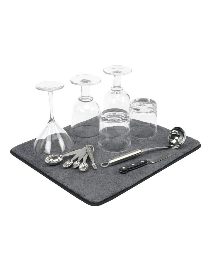 The mat, with a soft texture and look that fits into any dcor, creates a perfect drying environment for excess or precious glassware or other kitchen utensils or cookware, while keeping your benchtop dry and protected.