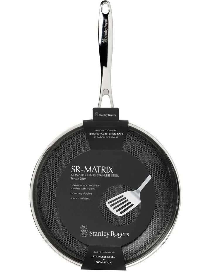 Revolutionary non-stick with protective stainless steel matrix. 100% metal utensil safe. Hybrid performance of stainless steel and non-stick – great for searing and browning with the benefit of non-stick.