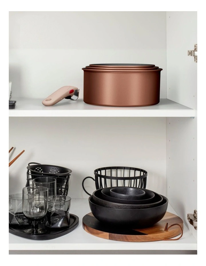 SPACE SAVING: With a space saving stackable design, Ingenio cookware fits conveniently into cupboards, cabinets and shelves