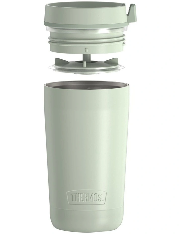 Thermos vacuum insulation technology for maximum temperature retention, keeps hot up to 3 hours or cold up to 10 hours. Durable stainless steel interior & exterior. Cool to touch with hot liquids, sweat proof with cold. Slide Lock Lid is simple & easy to use. Leak Resistant Plunger Lid system easily disassembles for thorough cleaning. Will fit most vehicle cup holders.