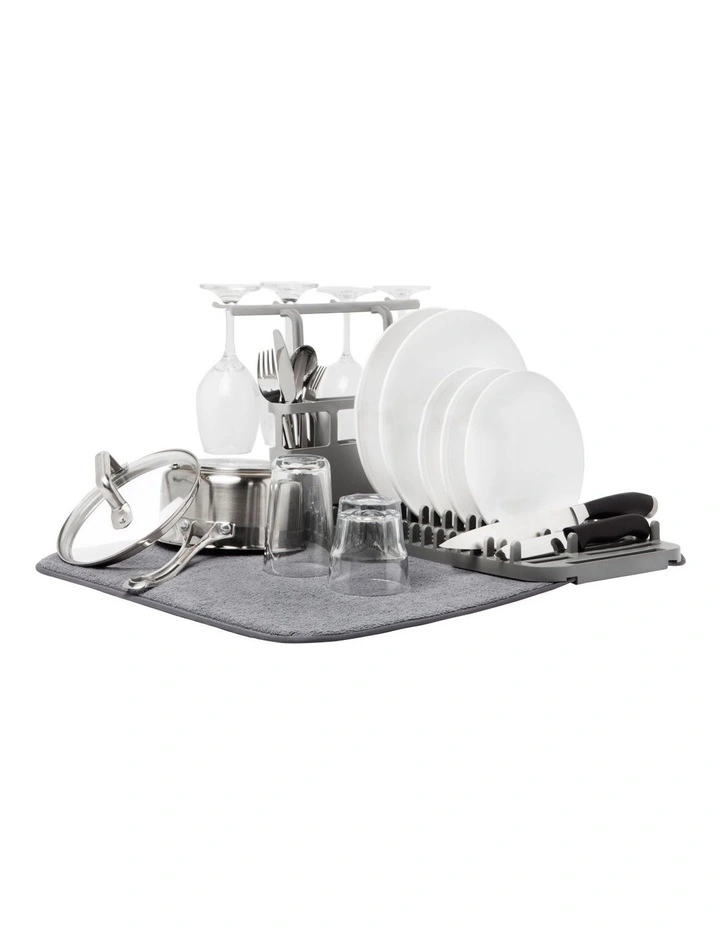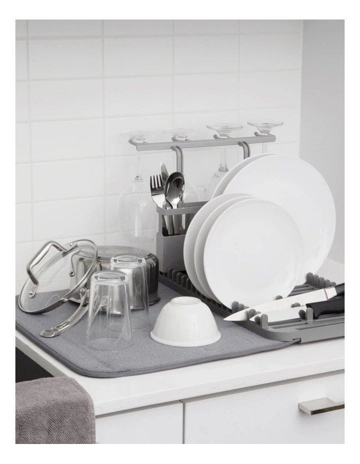 But don’t let its sleek appearance fool you, UDry holds a surprisingly large assortment of dishes, glassware, cutlery, pots, pans and more. When not in use, your UDry folds up neat and compact so you can tuck it away in a drawer or cupboard leaving your counter top completely clutter-free.