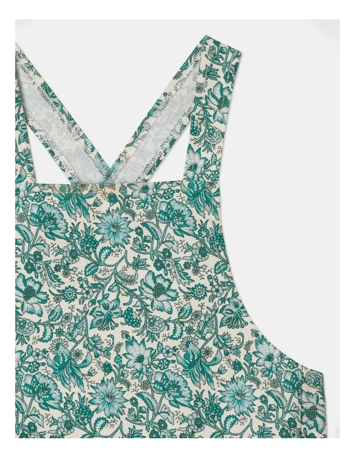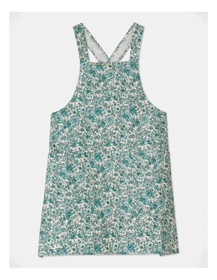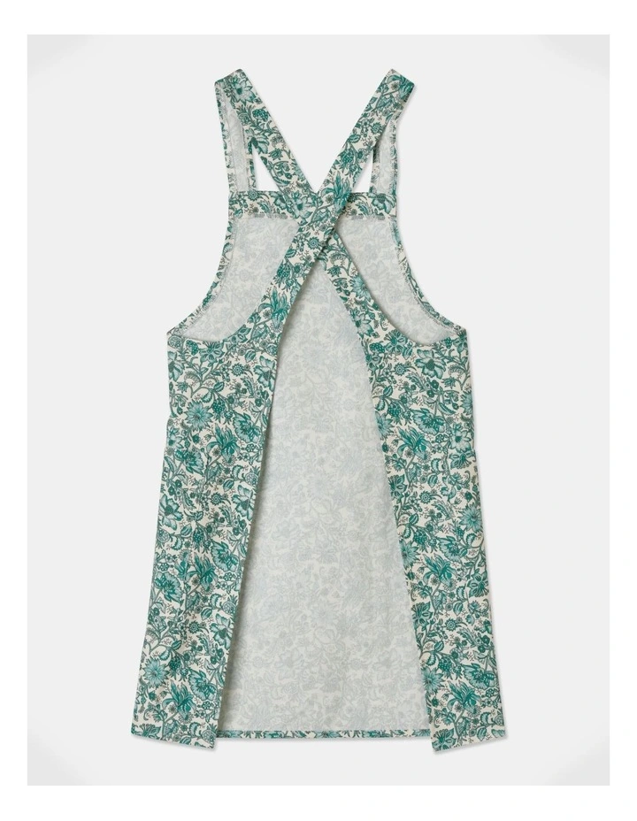 Woven apron with all over print, 2 open pockets at front and cross straps with tie strings at back. This piece is the perfect addition to all any outfit when cooking or doing an activity that will require a little extra mess with the family.
